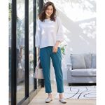 夏にいい薄手の素材です。足がスリム幅なのがいいです。