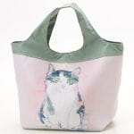 布バッグは軽いので使い勝手が良いです。トートバッグかミニサイズか迷いましたがミニで充分そうです。淡い優しい色遣いのユニークな猫の二十?面相笑えます。