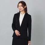 こちらのジャケットはテーラードジャケットタイプで黒、グレーを持っています。ノーカラータイプのベージュも夏らしい色なので、スカートとスーツで購入しました。背抜きで肩こりせず、真夏でも行けます。