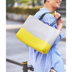予想より大きかったです。通勤・通学等の普段使いより、一泊旅行ぐらいに向いているかもしれません。持ち手は本革のほうが高級感があったと思います。
