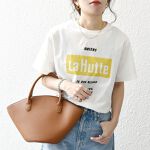 薄手で透け感もありますが、柔らかい生地で着やすそうです。ロゴの黄色の部分がアクセントになって可愛いです!