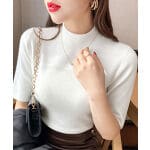 病気治療で採血や点滴の機会が多く、腕をまくって邪魔にならない半袖の暖かいニットが欲しくて探していました。思ったより薄かったですが、肌触りはよいです。暑いニットの下に着用しますので逆にちょうど良かったです。色はかなり白っぽいなグレーです。無彩色なので色々なカラーに合わせやすいと思います。