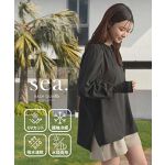 長袖のラッシュガードが欲しくて購入。妊娠8ヶ月ですが前の丈は股上が隠れるか隠れないかぐらいで後ろはお尻までしっかり隠れますので体型カバーもバッチリ。生地に関しては、エクリュにしたので濡れてない状態でも色の濃いインナーは透けると思います。濡れたら完全に透けるかと。
