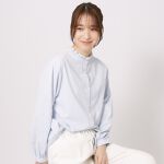 首回りのプチフリルが可愛く、一気にフェミニンな感じになります。
