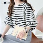 少し生地が厚いですが首まわりもちょうどいい。151センチのMサイズで肘がちょうど隠れる感じです。袖がポワンとしてかわいいです。