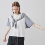 デザインは良いのですが、生地が悪すぎます。袖のポリエステルの硬くて厚い生地は、夏に暑苦しくて残念です。1回洗濯しても袖のたたみじわは、取れません。