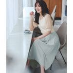 淡い色ですが裏地もあるので、下着も透けにくいと思います。ウエストとゴムが入っているので、トップスをインしてもはきやすそうです。