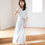 ホワイトを購入しました。シルエットが綺麗なワンピースです。上のニット部分は薄手で、体のラインを拾いすぎないフィット感が良いです。スカート部分も広がりすぎず、繊細で上品です。
