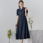 デザインが清楚できちんと感があるワンピースです。形がきれいで、通勤用としてもおすすめです。一枚あると服装に迷った時に着やすいので便利だと思います。