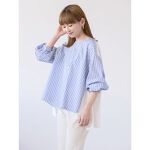 異素材の組み合わせが一捻りあるデザイン。袖がゴムなので、袖の長さが調整でき、今の時期にぴったりです。爽やかなストライプ柄を選んで正解でした。お洗濯してもシワにならず、お手入れが楽です。