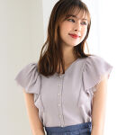 フリル袖がかわいいですが、Vネックで甘くなりすぎず会社にも着ていけます。