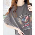 袖の感じ、前のプリントがとっても可愛いです。甘さとハードさがちょうど良いです。近くの買い物などに来ていこうと思います。