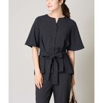 パンツとセットで購入しました。胸元が少しヘラヘラしましたので自分で直してみました。ベルト付きですがベルトが重く感じます。
