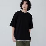 合わせやすく、レイヤード風なので万能Tシャツですね。サイズはゆったりめです。