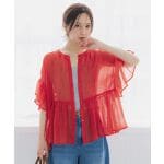 色違いで購入。ダークカラーだけどフリルがあるので着用した時にカッコ可愛い感じになります。ノースリーブの広がりのあるワンピースと合わせてみたらフリルのせいか可愛くなりすぎて、合わせたかった服とは組み合わせられませんでした。好みの問題ですが。着回しを考えるのも楽しいです。涼しく着られて初夏から秋口まで長く着られると思います。