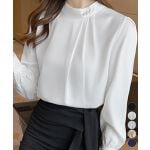つるっとした光沢のある生地で、スーツに合いそうです。ただ、首の後ろのボタンが止めづらかったので星4つにしました。