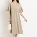 肩の落ち感がオシャレです。ジャージー素材で着心地が良いです。胸元のVネックの開き具合が上品でとても気に入りました。