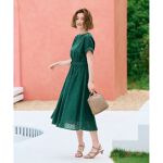 着心地が良いです。幾何小花柄は上品で素敵。下半身はフレアラインなので可愛いけれど、痩せて見えないのが個人的に残念です。それと受け取った時に透明袋に畳んだ状態で梱包されていたのですが、広げたら複数個所にくっきり折り目がついていました。