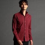 伸縮性はない綿のシャツで形がしっかりとしていて固めの感じです。
