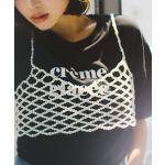 Tシャツの上に着るビスチェを探していました。レースほど甘くないのがありがたいです。伸び縮みはしません。ビーズで編まれているので少し重さとごわつきがありますが、デザインが可愛いです。