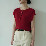 シンプルでありながら後ろのボタンデザインがお洒落です。生地は真夏だとちょっと暑いかなと感じました。腕を上げると脇からインナーがしっかり見えてしまったのも想定外でした。しかし、どんなボトムスにも合わせやすい着回しがきくお品だと思ったので☆4に。