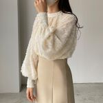 袖にボリュームがあるけど着膨れして見えることもなく、女性らしさがあってとても綺麗です。黒も欲しかったけど残念ながら売り切れ。袖口がボタン3つでとめられており、外さないと腕をまくれないのが難点。手を洗ったり水仕事するときは面倒くさい。