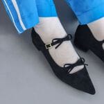 普段24.0cmのスニーカー、パンプスを履いています。縦の長さはピッタリ!特に甲高ではないのですが、つま先側のリボンが少し足に食い込むので長時間歩けるか心配。デザインは可愛いです!