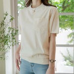 モデルさんは首が詰まってみえるけれど、私が着ると鎖骨が見えるくらい、襟ぐりが広いです。