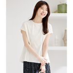 ウエストのタックがスタイル良く見せてくれます。裾が前より後ろが長くお尻を隠してくれます。残念なのは脇がチラッと見えてしまうところです。