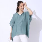 ブルーの方を購入してすでに真夏並みの暑い台湾で着ましたが、ドルマンスリーブなのでジメジメした気候でも風通しがよくサラッと着れて体型も目立たず気に入ったので色違いのブラックも購入しました。