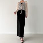 アイボリーにピンクのメッシュカーデが付いてますがカーデは使わないかも。