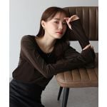 今年らしいシアーベロアで袖は少し長めです。フィンガーホールがついていて、トレンドっぽく着こなせます。首のあきもちょうどよくジャンスカのインナーやベスト合わせなどいろいろ使えそうです。