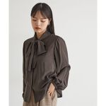 可愛いですが、アイロン必要な生地です。シアー感のあるブラウスでベージュに近い色です。合わせやすく少しボリュームあるボウタイがポイントです。