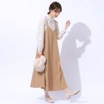 155cmでMサイズ、調整なしで着られます。生地は薄手に感じましたが、持ってみると重みがあるので、ストンと落ちるシルエットになります。トップス次第で印象が変わりそうなので、着回しを楽しみます!