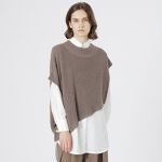普段はMサイズで、今回は34サイズだと小さいかなと心配してましたが、ちょうどよいサイズでした。ニットの変わった形にひかれて買いましたが、白いシャツは他にもいろいろ合わせて着られるのでよいです。
