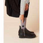 125cm弱くらいで細身の子ですが、余るシワなどもなく履けました。購入前は足首のハートにしか目がいってませんでしたが、足裏にロゴが描かれていてとても可愛いです。