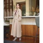 他社サイトの中の、「丸井店」で黒のMを購入しました。変わらず丁寧な梱包でした。黒のロングコートは初めて購入しましたがガウンのデザインで思ったよりも重くならず、ウール85%なので驚くほど軽く暖かいです。丈は、154センチで踝の上くらいでした。