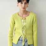 リボンが可愛く…少し薄手の生地なので春先に着ようと思います黄色というよりも黄緑色に近いと思いました