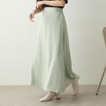 サテン生地の厚みが薄すぎず、厚すぎずちょうど良い。ウエストサイズ長さともに少し大きめでこちらのスカートの場合はMサイズの方がジャストだったかもしれない。デザインはとても綺麗なライン。