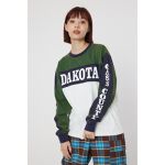 グリーン。古着風の生地です。サイズはLで丁度いい。お腹の白は少し透けます。