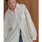 シャツですが腕にはボタンがありません。透け感が控えめなので40代でも着れます。