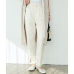素材感は薄めで、春夏仕様。伸縮なし。シルエットはとても綺麗。ややテカリが気になる印象。