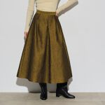 ブラック サイズ38を購入センターにタックが入っており、生地感も相まってふんわりシルエットです。丈は長めで裏地もついているので、これからの寒い時期にも重宝しそうです。