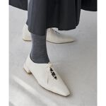 皮がとても柔らかく、レースアップの部分が多いので、横幅は調節がきくと思います。紐を緩めにしめて下に履くタイツや靴下の色が覗くように履くのがカワイイです。