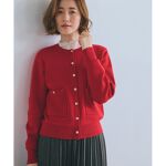 金ボタンがおしゃれなカーディガンです。赤を購入しましたが派手過ぎず、暗くなりがちの冬のコーデを明るくしてくれます。小柄な150cmで普通体型