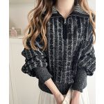 【mily bilet】コーデの主役を飾る。クロップド丈配色ケーブル編み胸刺繍ハーフジップニットの口コミ一覧