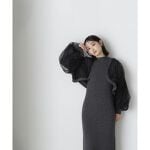 温かみのあるニット素材のカーディガンにワンピース♪特にカーディガンはニットの上にチュールが重ねられていて繊細な美しさで見ているだけでうっとりしてしまいます。