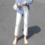 写真よりもずっとくすんだ感じのホワイトです。伸縮性がありしっかりした生地ですので、夏には少し暑いかもしれません。