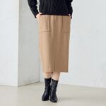 冬らしいスカート。ふわっとした生地でかわいい。ウエストに、程良くゴムがあり履きやすく、ストレスない。色違いで購入。ただ、スリットが短いので、車の乗り降りがキツイ。