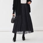 安いマキシスカートは静電気が凄いのですが、こちらは良いお値段なだけあって、下に防寒で綿アクリルのタイツを履いても静電気で張り付くことなく真冬も履けるので、オールシーズン使えそうで良いです!